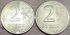 Описание реверса: В середине немного смещенная влево и вверх цифра «2», обозначающая достоинство монеты, ниже надпись «РУБЛЯ», в нижней части поля, слева и справа завитки растительного орнамента