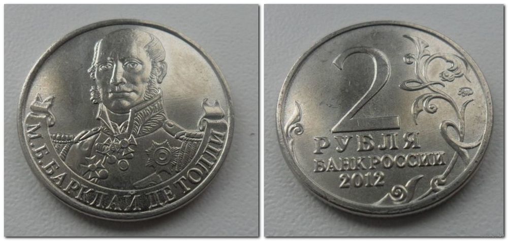 2 рубля 2012 год - Барклай де Толли, ОВ 1812 года