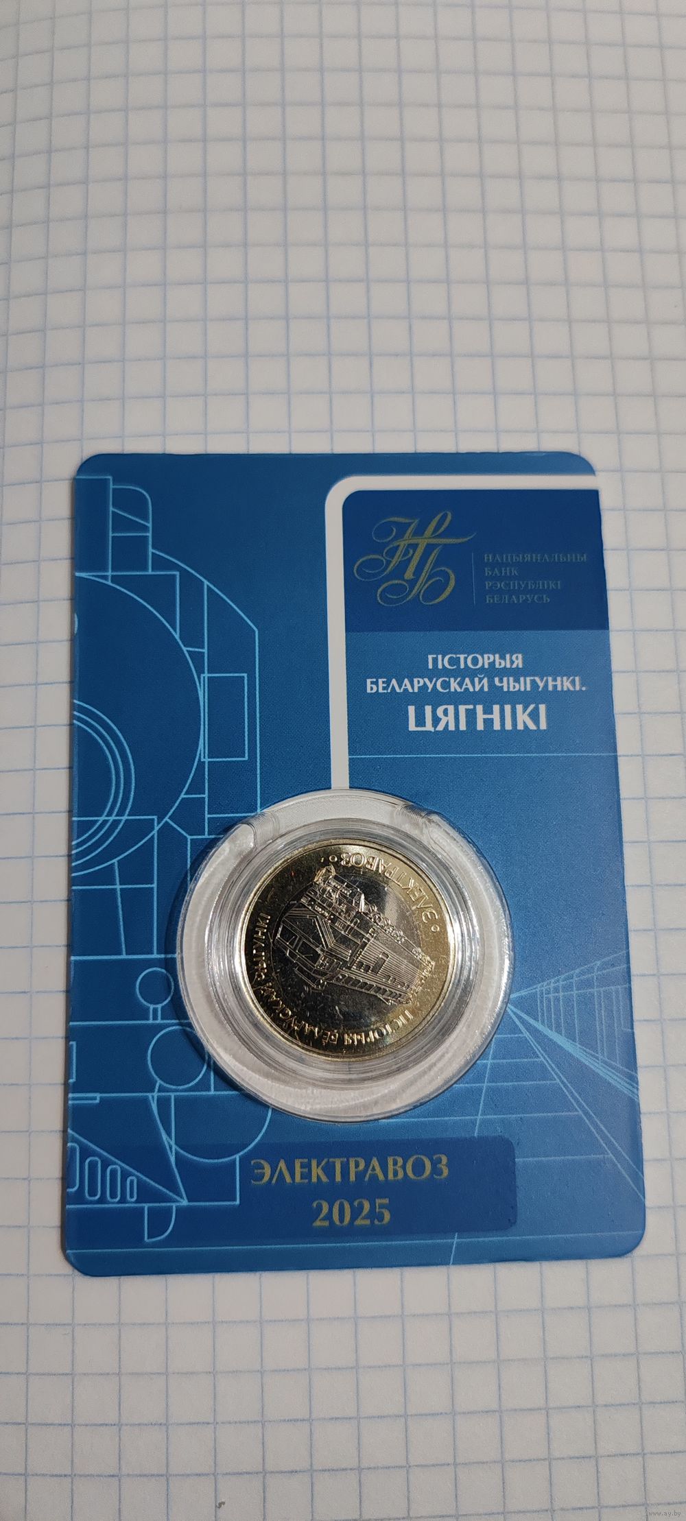 2 рубля Беларусь 2025. История железной дороги. Электровоз. Поезда