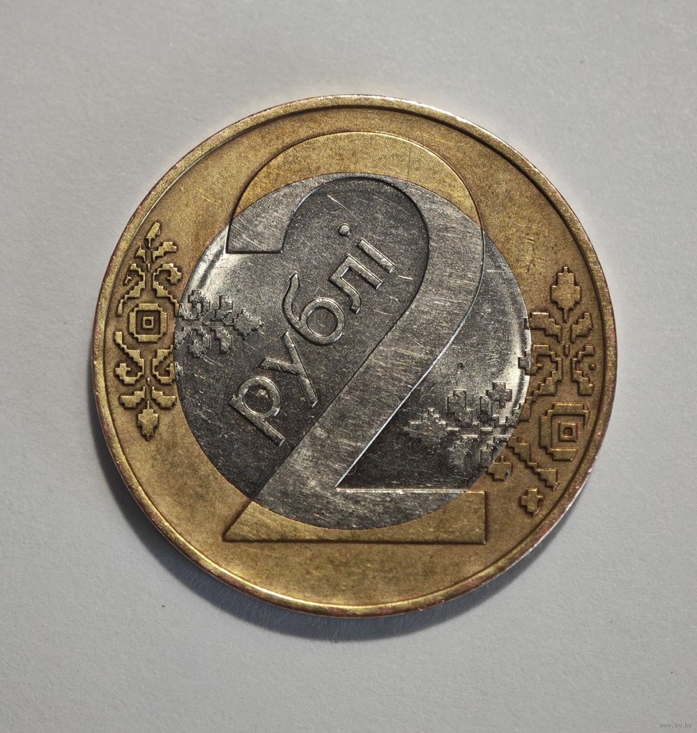 2 рубля РБ. Брак - смещение центральной вставки монетной заготовки.