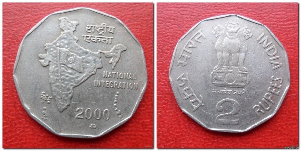 2 рупий 2000 года Индия Национальное объединение - из коллекции
