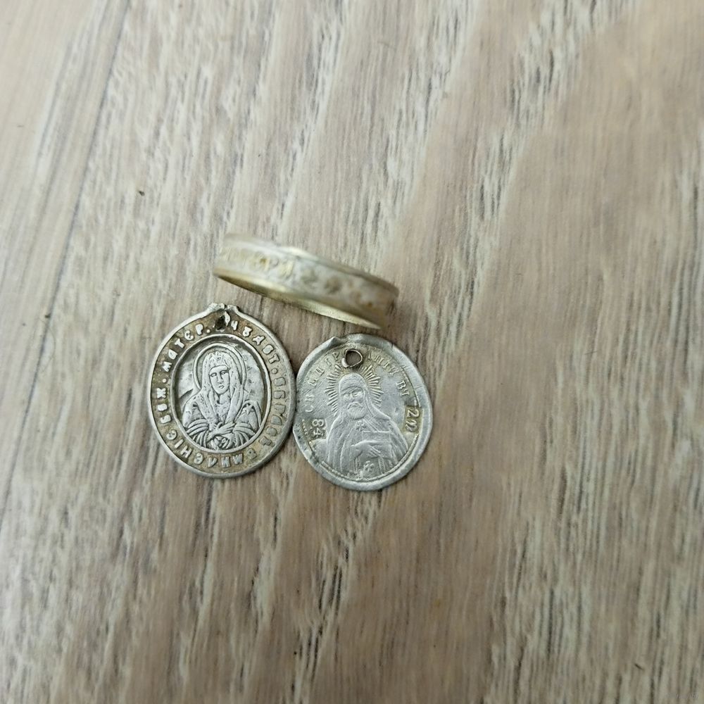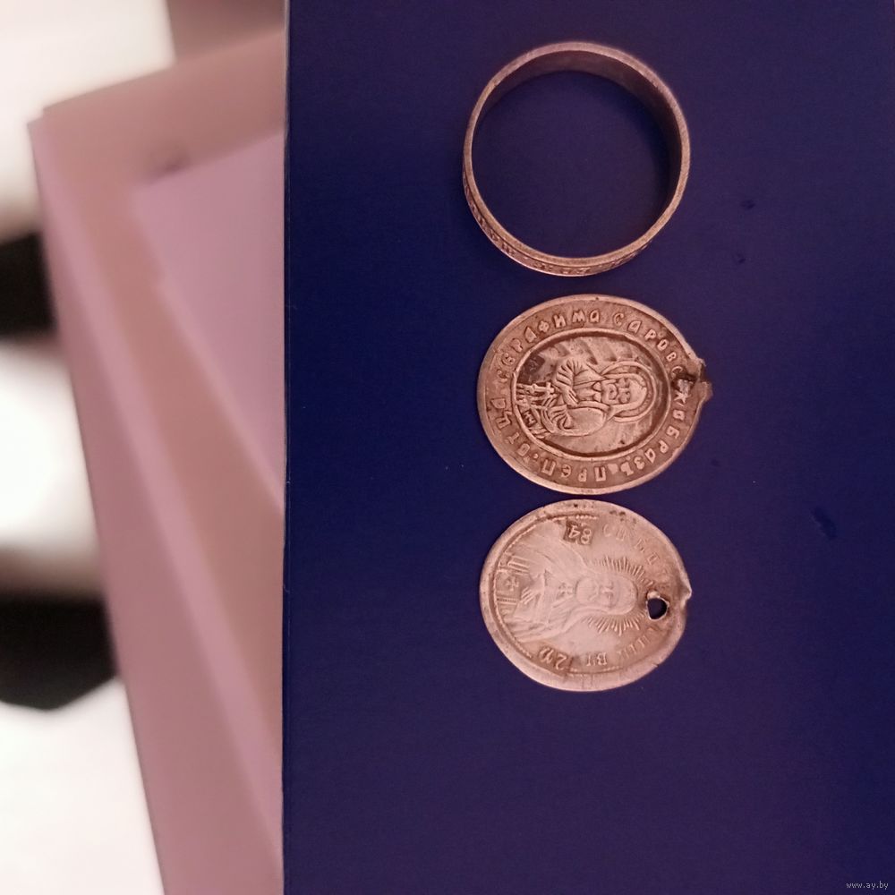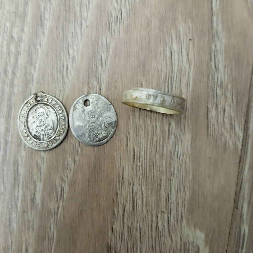 2 серебряных медальона+сер.кольцо от почаевской бож.матери.