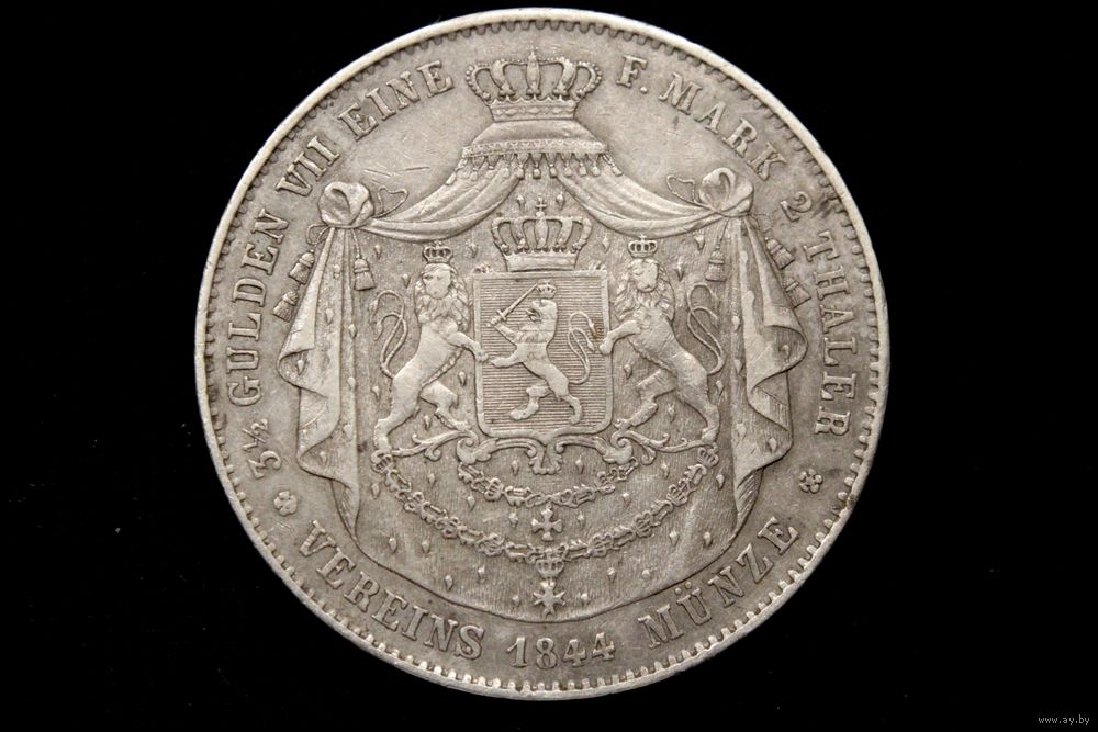 2 талера 1844 г. Гессен-Дармштадт (Германия), Людвиг II. Кабинетная патина, пореже!
