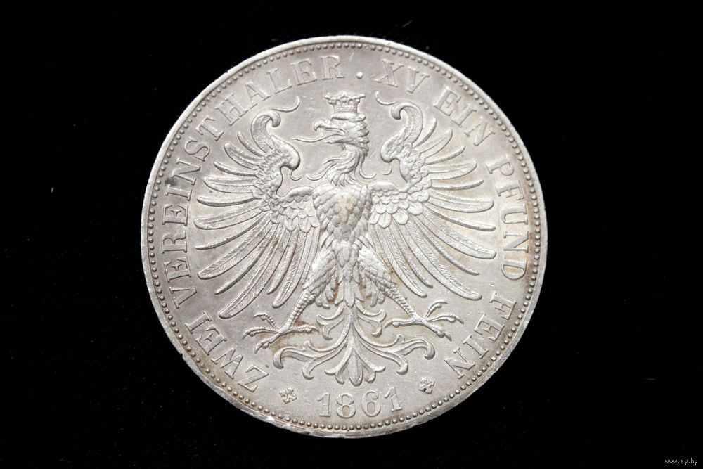 2 талера 1861 г. Франкфурт (Германия). Кабинетная патина, пореже!