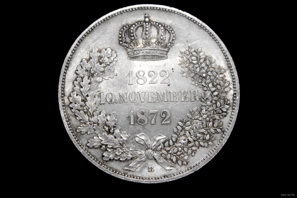 2 талера 1872 г. Саксония (Германия), Иоганн V. "Годовщина Золотой свадьбы". Штемпельный блеск, редкая!