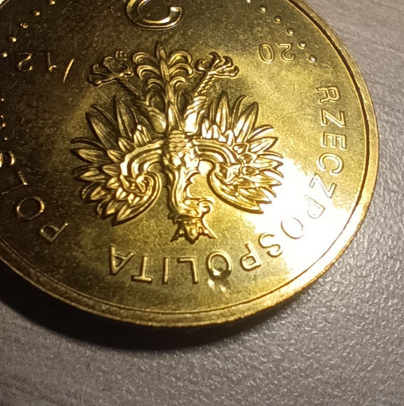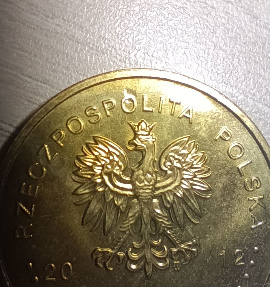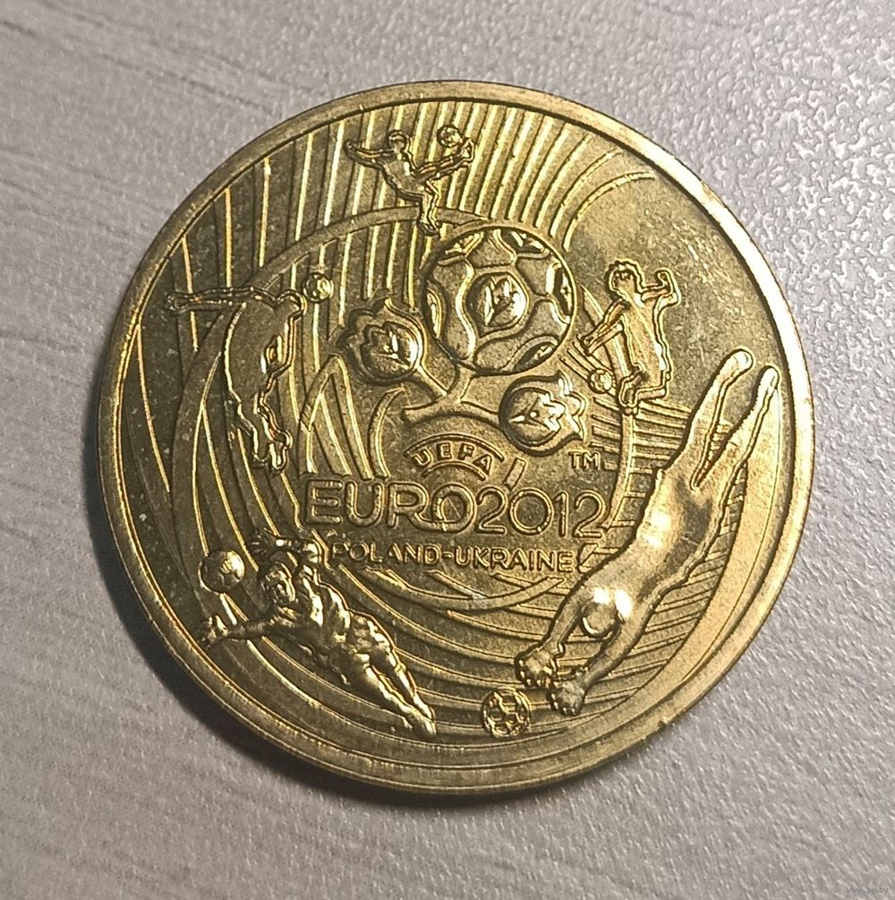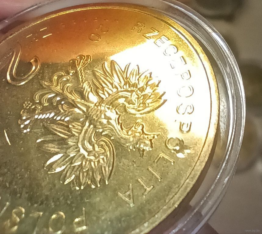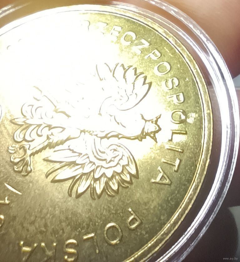На реверсе монеты над короной орла верхняя часть буквы О и поля монеты - выемка, покрытая сверху гальваникой.