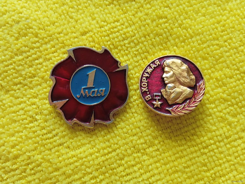 2 значка - "1 мая" и "В.ХОРУЖАЯ"