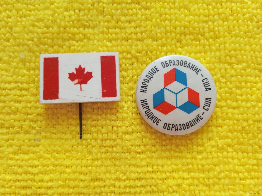 2 значка "Флаг Канады" и "Народное образование - США"