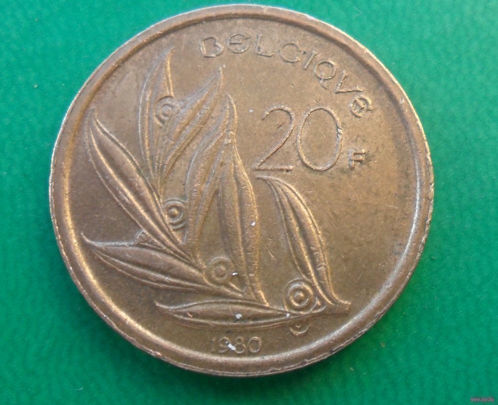 20 франков Бельгия 1980 г.в. Надпись на французском - 'BELGIQUE'.