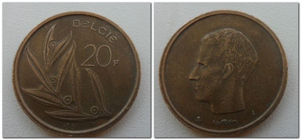 20 франков Бельгия 1981 год, KM# 160, 20 FRANCS (20 Frank) - из мешка