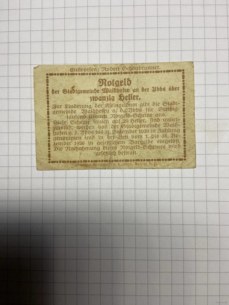 20 геллеров (нотгельды) Австрия.-2412