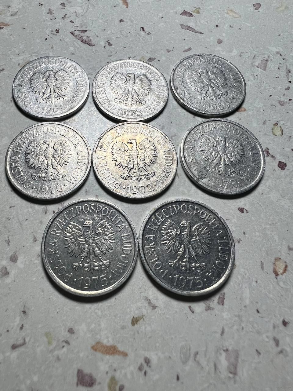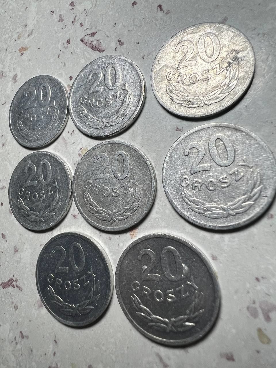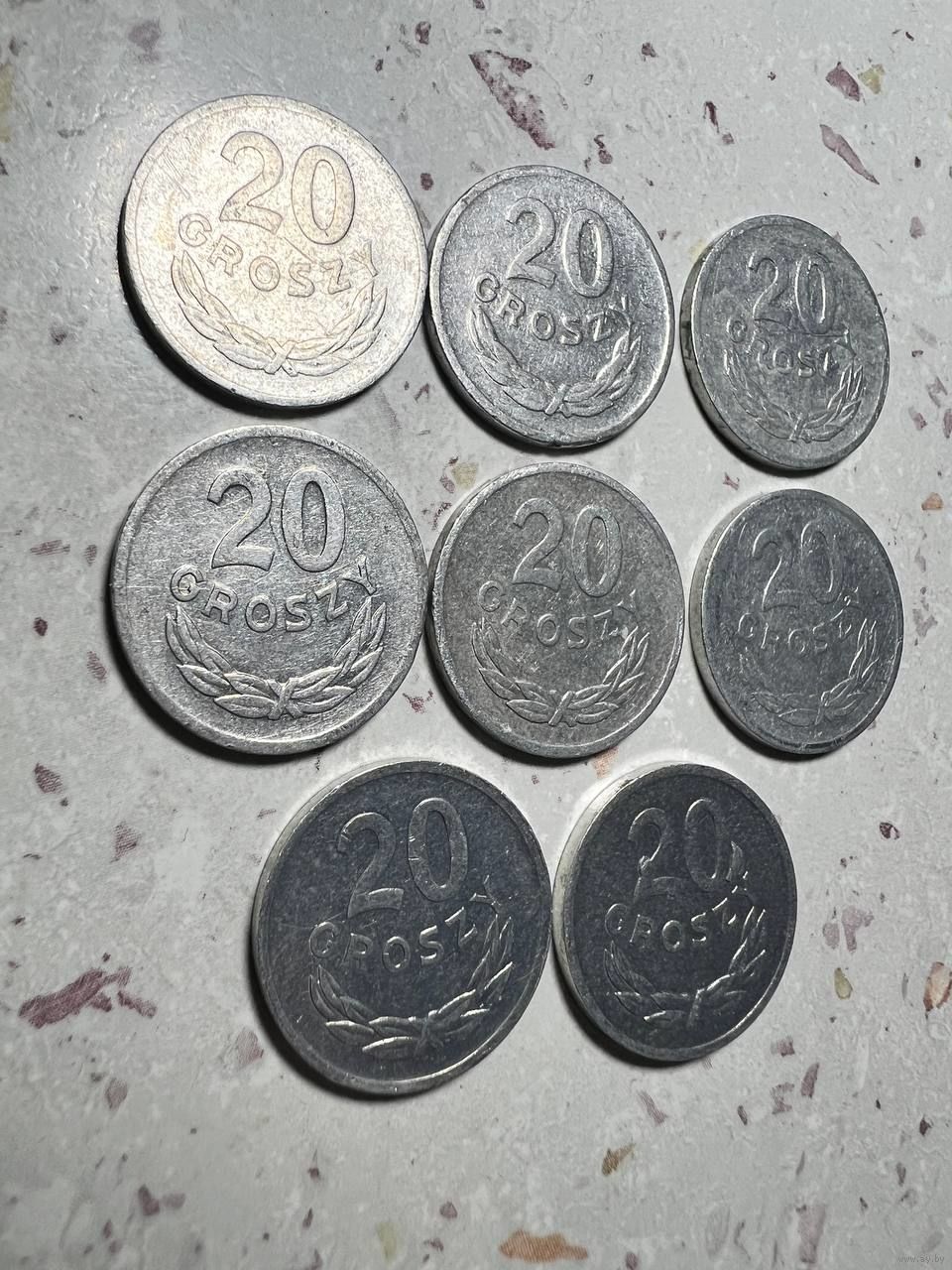 Лот состоит из 8 монет ПНР 20 грошей 1961-75 года. Цена за все.