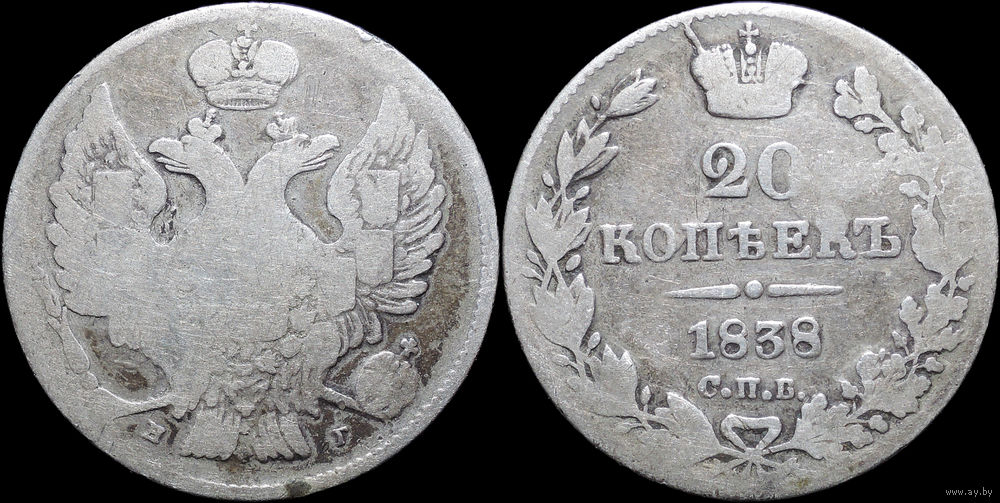 20 копеек 1838 СПБ НГ, Нечастая! С 1 Рубля! Смотрите другие лоты!