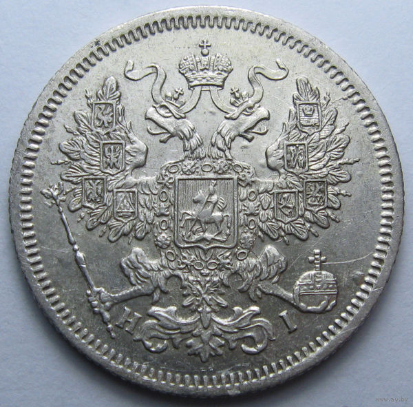 20 КОПЕЕК 1867 СПБ-НI ШТЕМПЕЛЬНЫЙ БЛЕСК, КЛАДОВЫЙ СОХРАН