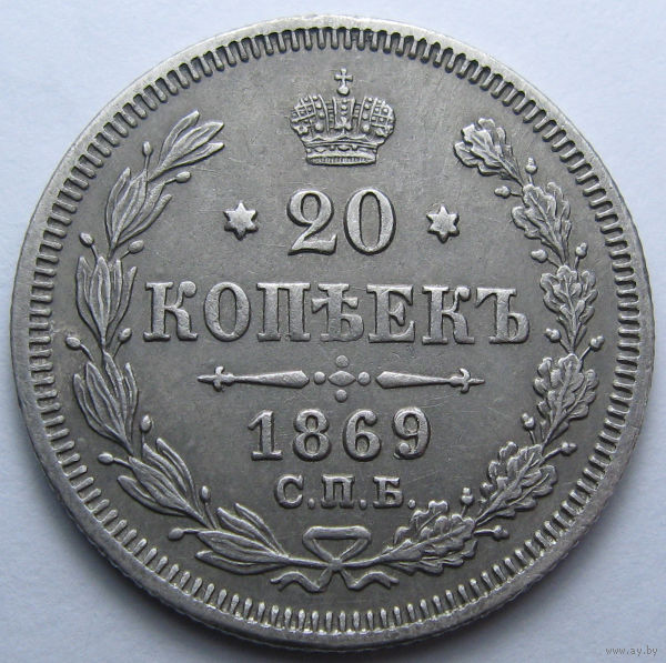 20 КОПЕЕК 1869 СПБ-НI СТАРАЯ ПАТИНА