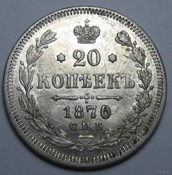 20 КОПЕЕК 1870 СПБ-НI ШТЕМПЕЛЬНЫЙ БЛЕСК, КЛАДОВЫЙ СОХРАН