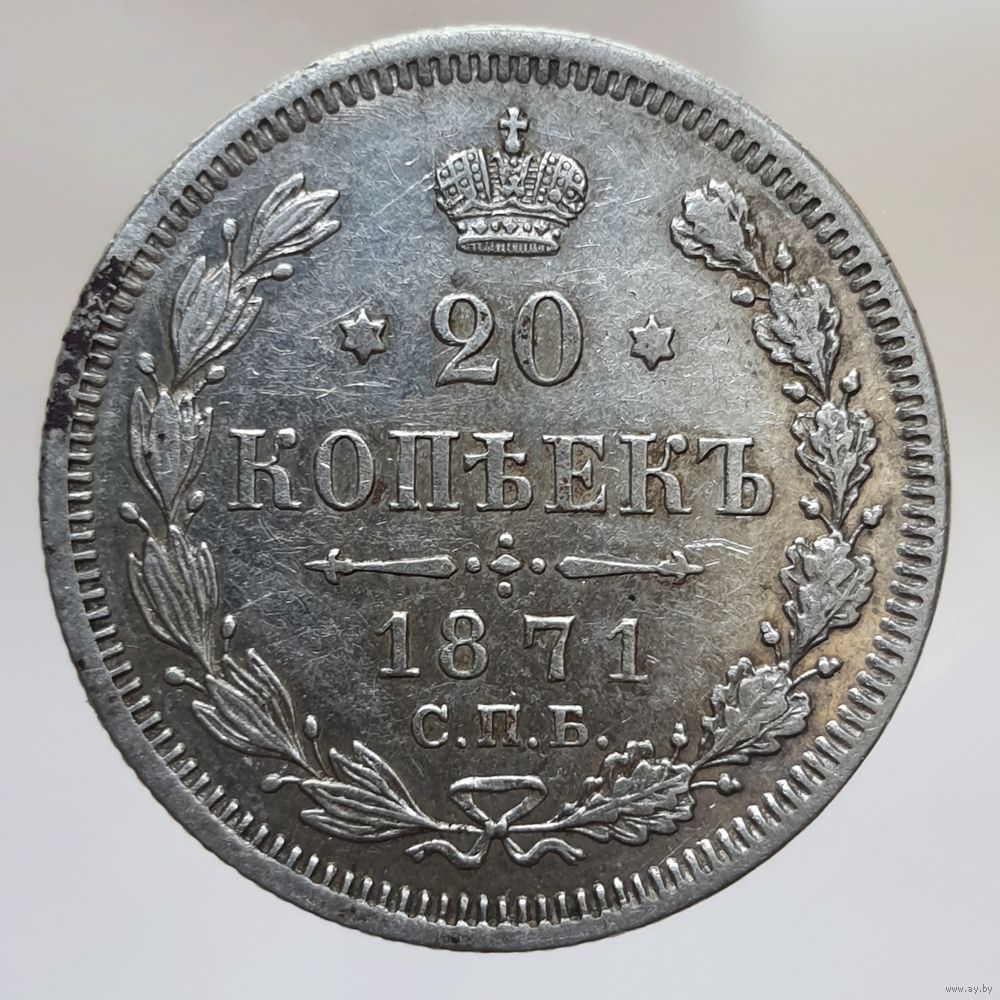 20 копеек 1871 HI состояние. Более 40 лотов с рубля.