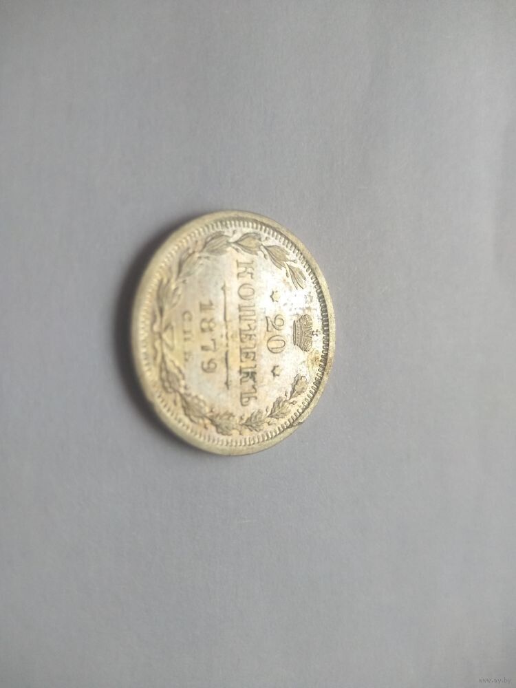 Общая информация Номинал 20 копеек Год 1879 Буквы СПБ-НФ Гурт рубчатый Качество выпуска для обращения и Proo fПравитель Александр 2 Тираж 23 070 005 шт.Характеристики Материал Серебро 500 пробы Тип материала Ag Вес3,60 гр.Вес металла 1,8 гр.Диаметр22,2 мм Каталожные номера Сводка номеров Уздеников 1947Биткин232Конрос146/60