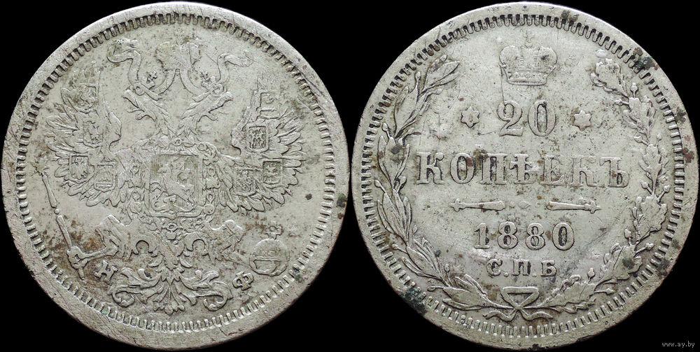 20 копеек 1880 СПБ НФ, Рельеф! С 1 Рубля! Смотрите другие лоты!
