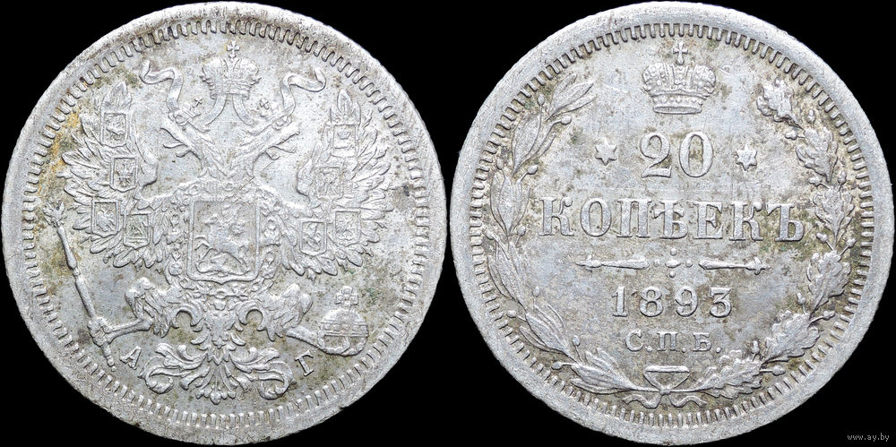 20 копеек 1893, aUNC, Отличная! С 1 Рубля! Смотрите другие лоты!