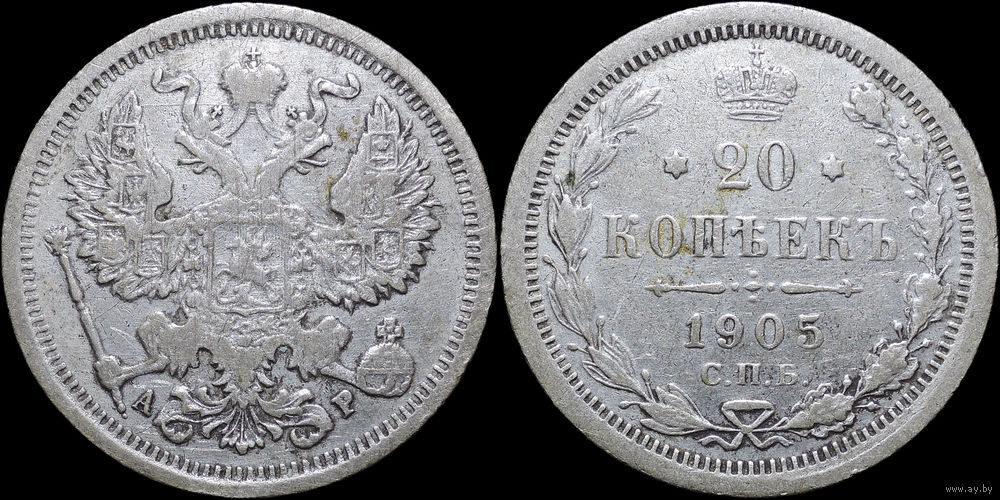 20 копеек 1905, Рельеф! С 1 Рубля! Смотрите другие лоты!