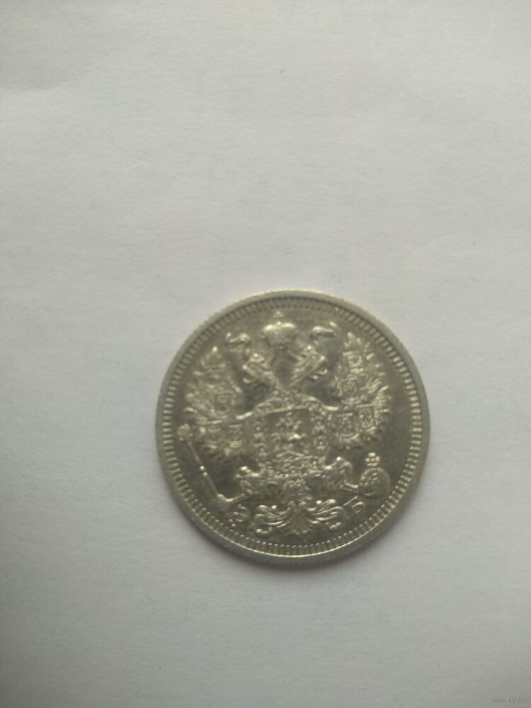 Аверс: в середине Малый Государственный Герб Российской империи, внизу вдоль края монеты слева и справа от хвоста орла инициалы минцмейстера «ЭБ» (Эликум Бабаянц).