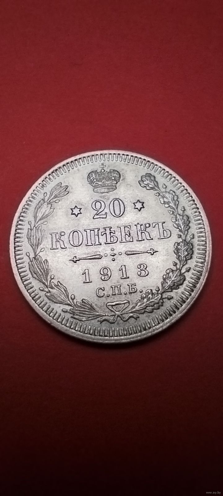 20 копеек 1913. Николай II. Серебро. С рубля. Штемпельные. (29)