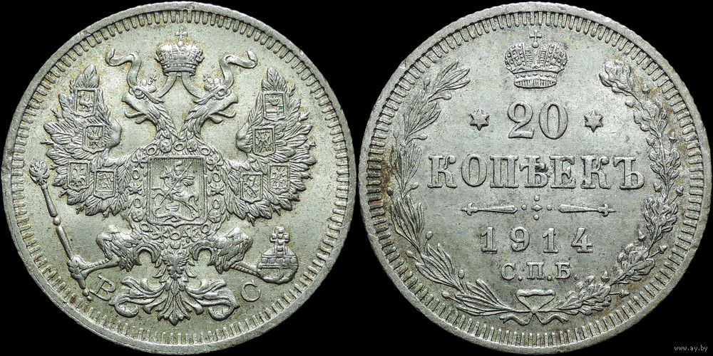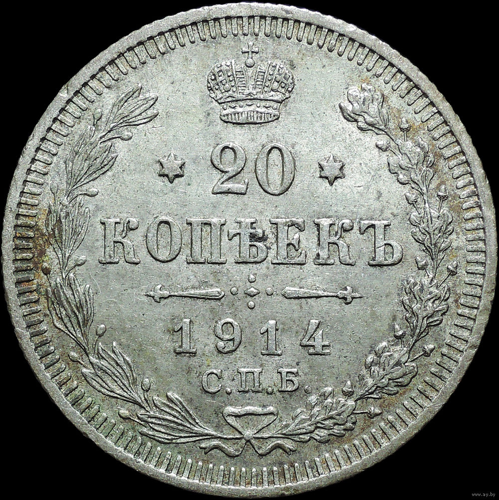 20 копеек 1914, aUNC, Отличная! С 1 Рубля! Смотрите другие лоты!