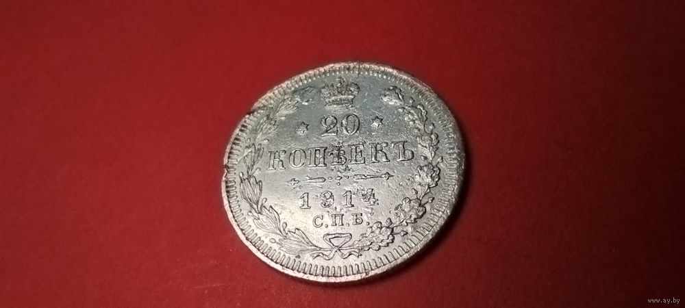 20 копеек 1914. Николай II. Серебро. С рубля. Блестящие. (30)
