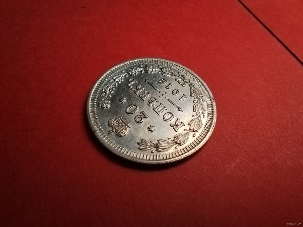 20 копеек 1916. Серебро. Николай II. С Рубля. (26) Штемпельный Нульц!