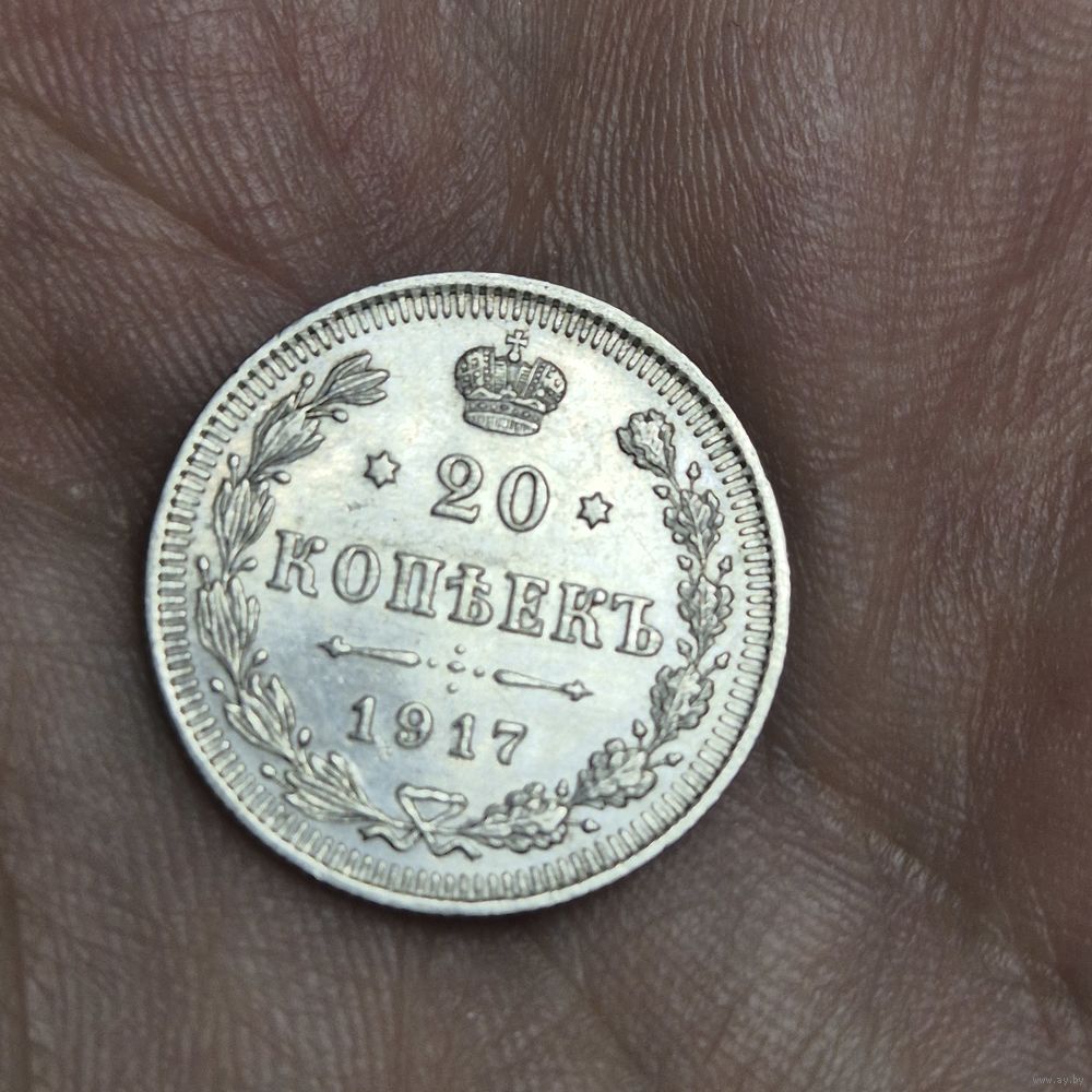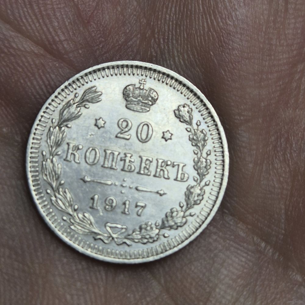 20 копеек 1917 года — редкая монета, являющаяся последним выпуском Царской Империи, которая впоследствии была переплавлена Советами.