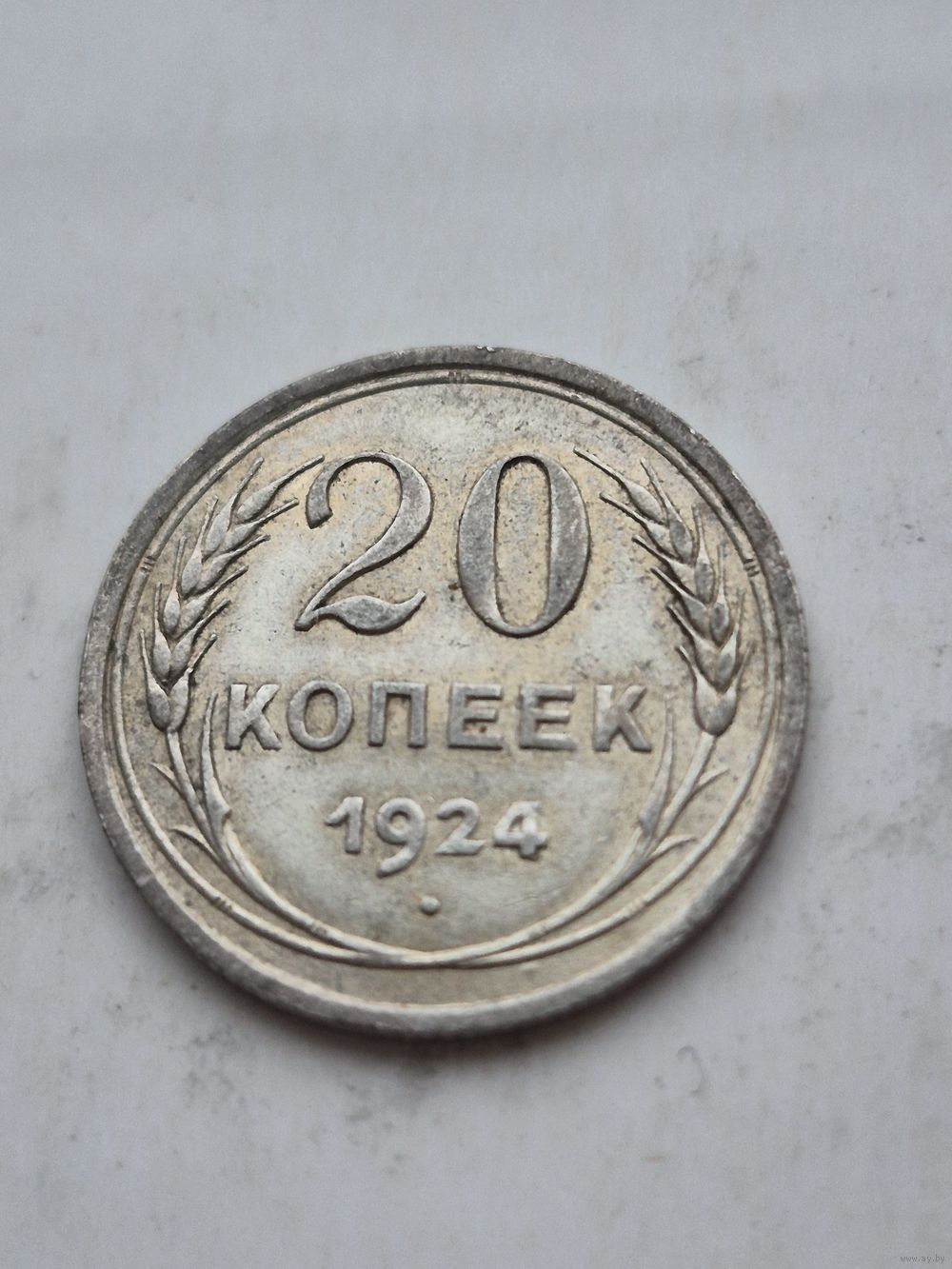 20 копеек 1924 года. Серебро 500. Монета не чищена. 45355
