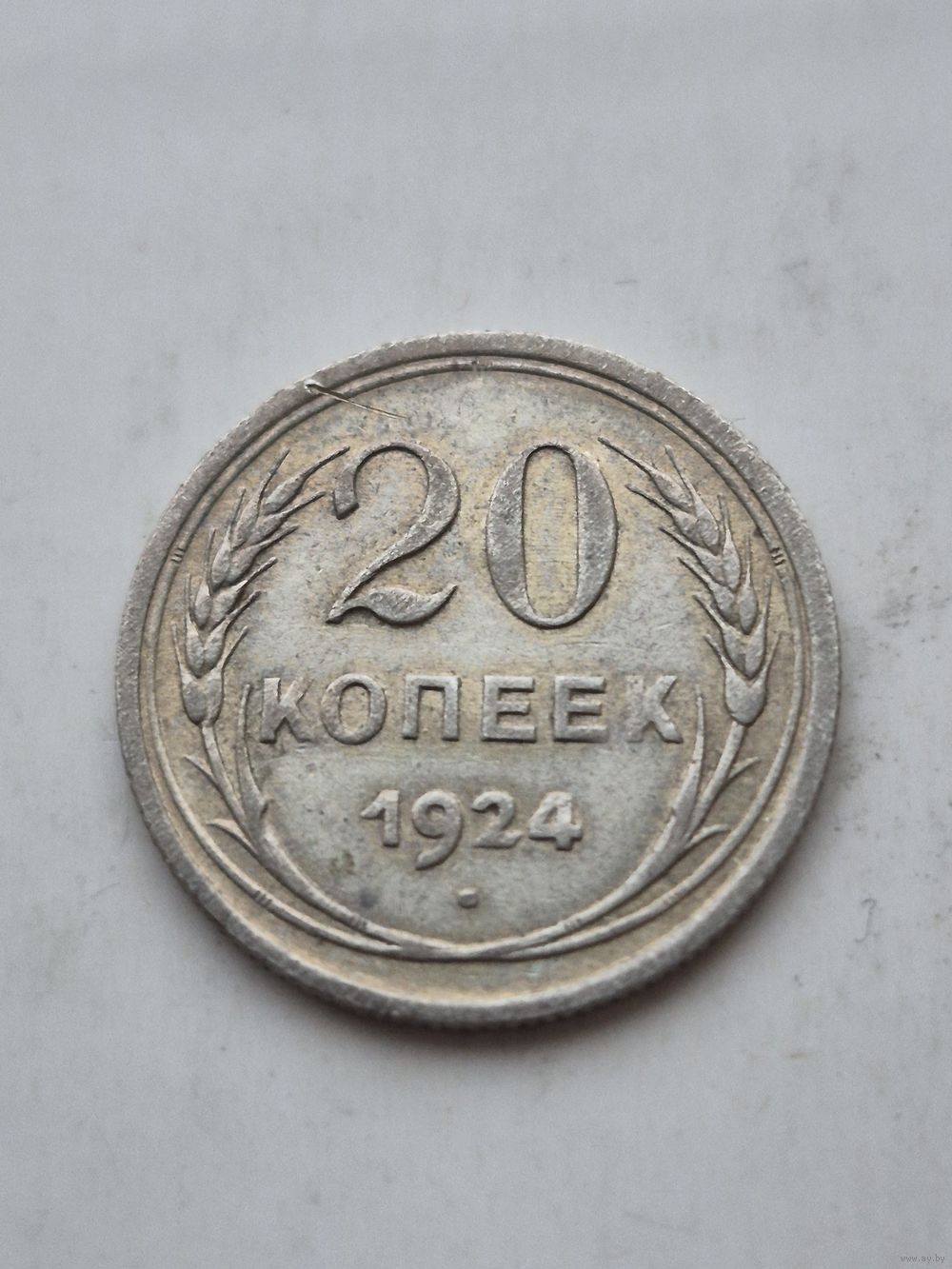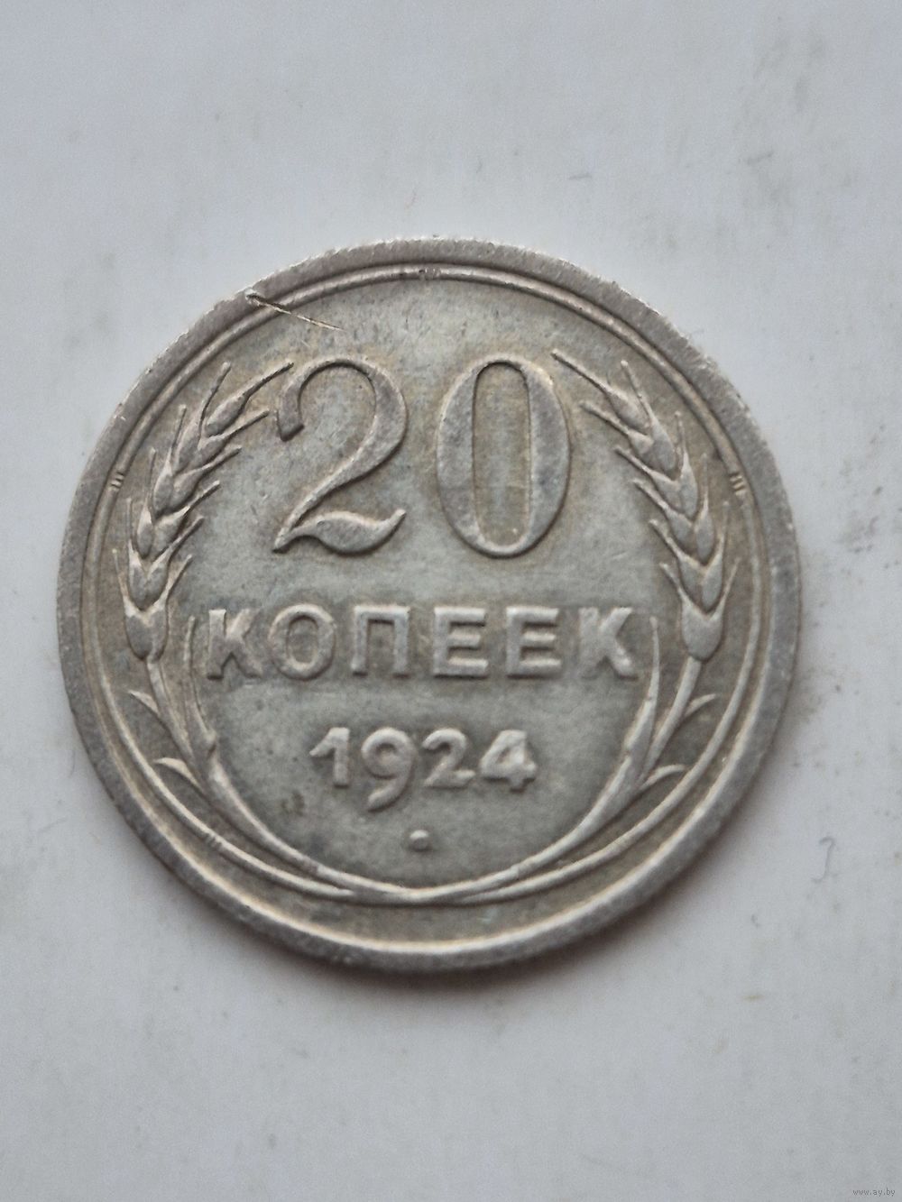 20 копеек 1924 года. Серебро 500. Монета не чищена. 45356