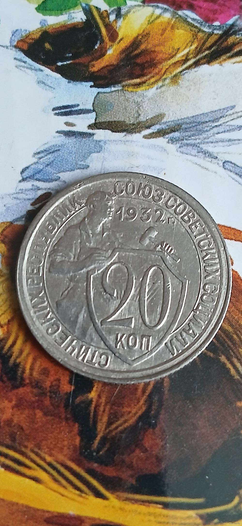 20 копеек. 1932 года .Брак отпечаток солнца с лицевой стороны.