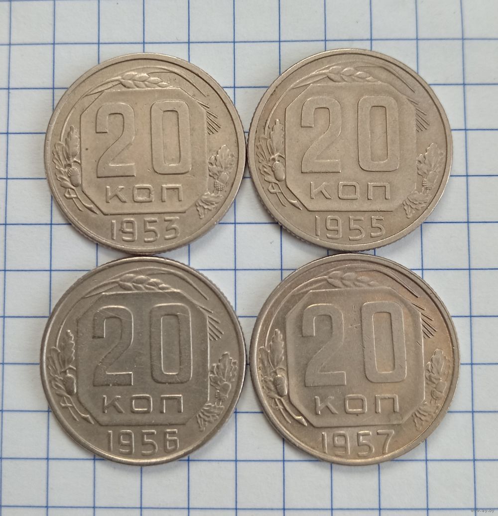 20 копеек 1953, 1955, 1956, 1957 годов.