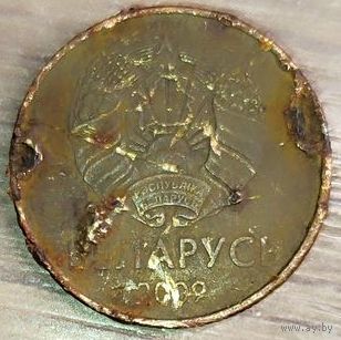 Монета номиналом 20 копеек 2009 РБ в количестве - 1шт (магнитная). Двустороннее вздутие и отслоение верхнего слоя монеты