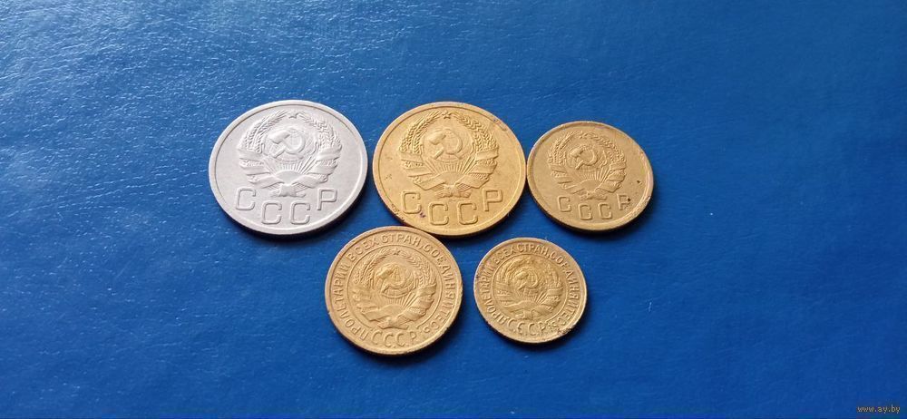 20 копеек,3 копейки нов.тип,2 копейки ст.и новый тип и 1 копейка ст.тип 1935 год СССР (Состояние на фото)В лоте 5 монет