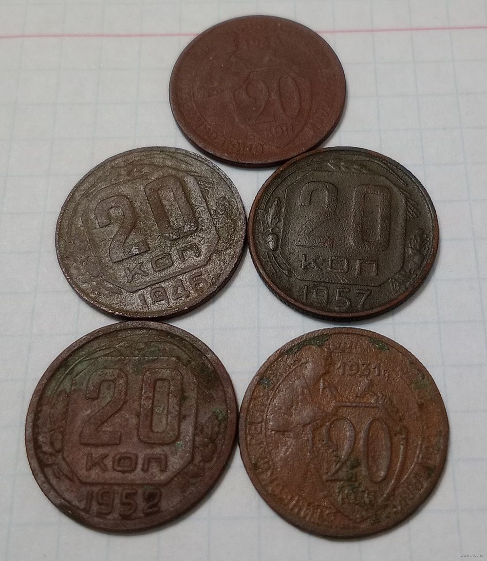 20 копеек СССР 1931,33, 45 52 57 годов