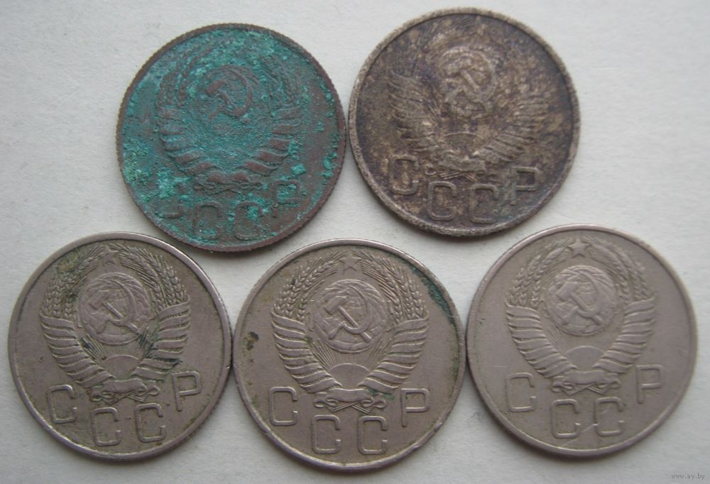 20 копеек СССР. 1946;1948;1954;1956;1957 гг.--5 шт.