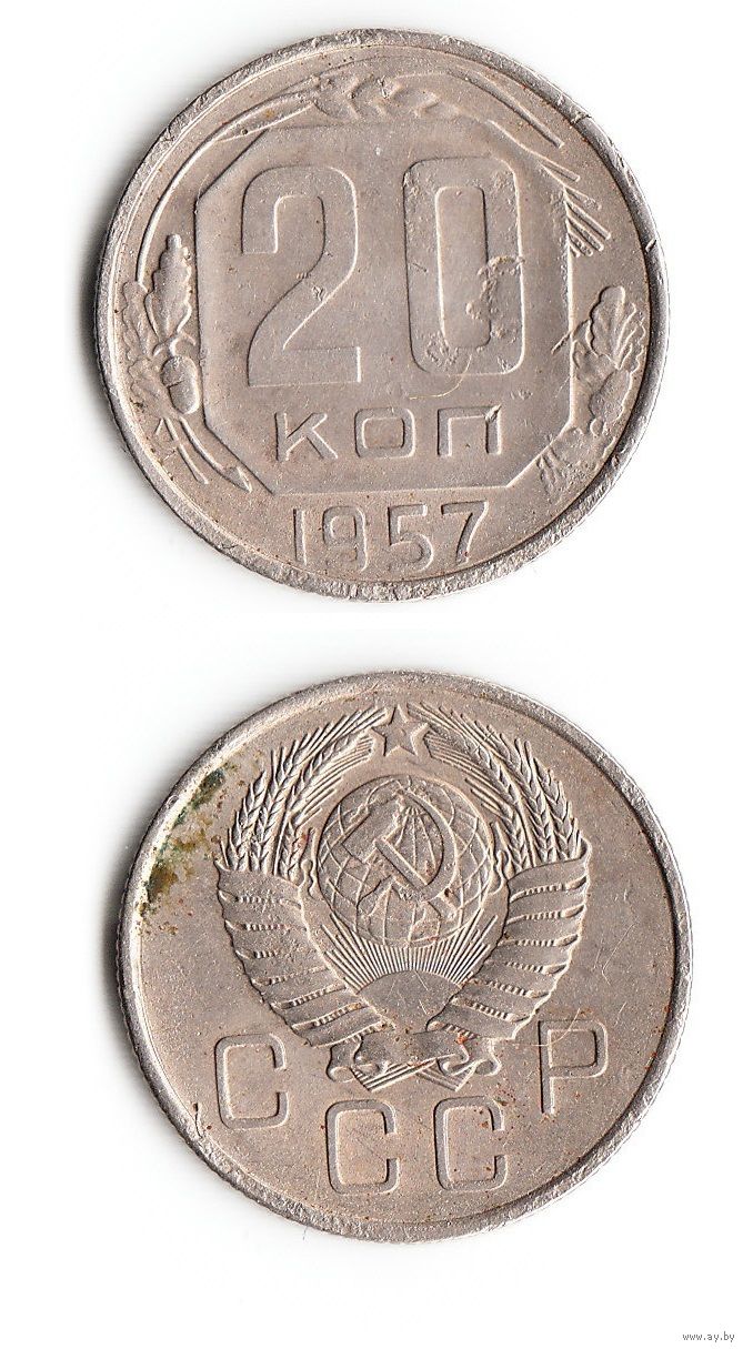 20 копеек СССР 1957 года, состояние отображено на скане.