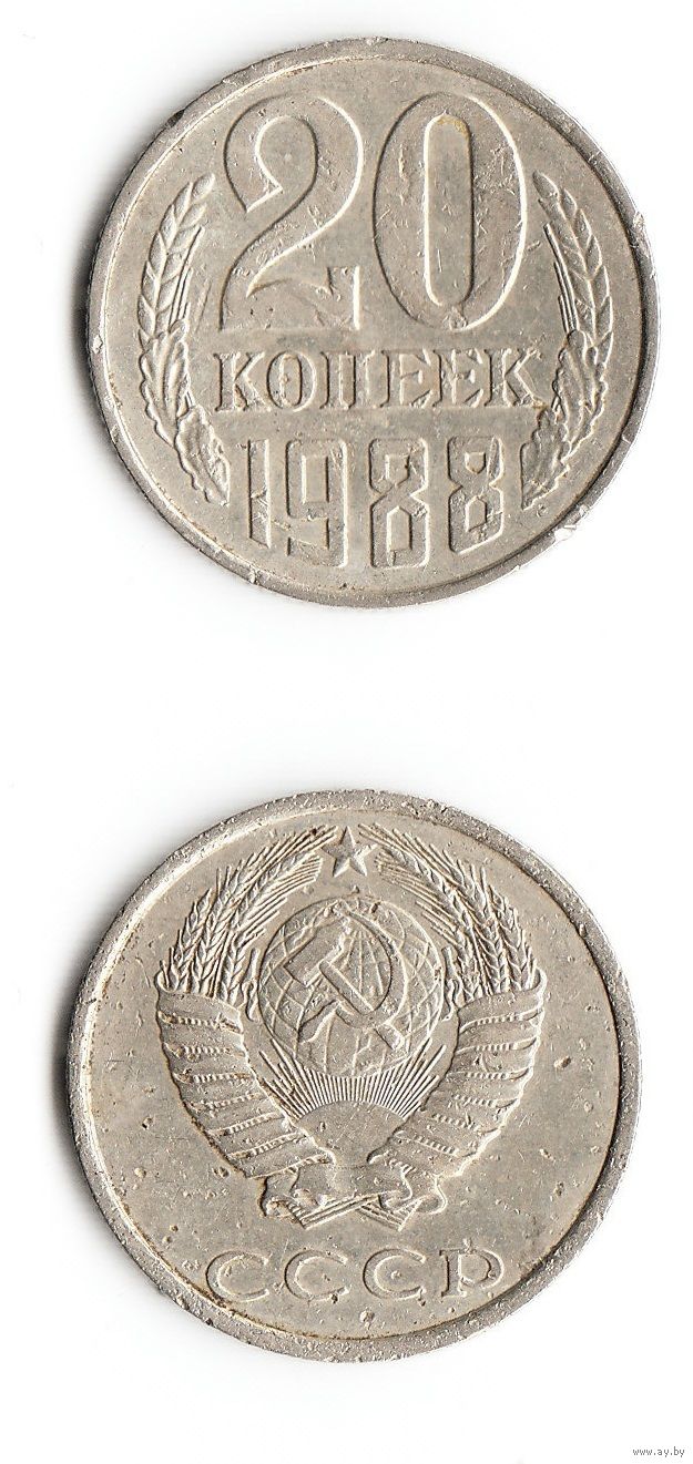 20 копеек СССР 1988 года, состояние отображено на скане.