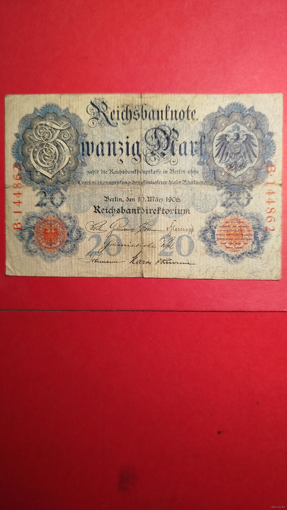 20 марок 1906. Германия. С рубля. (02) Очень Красивая Купюра.