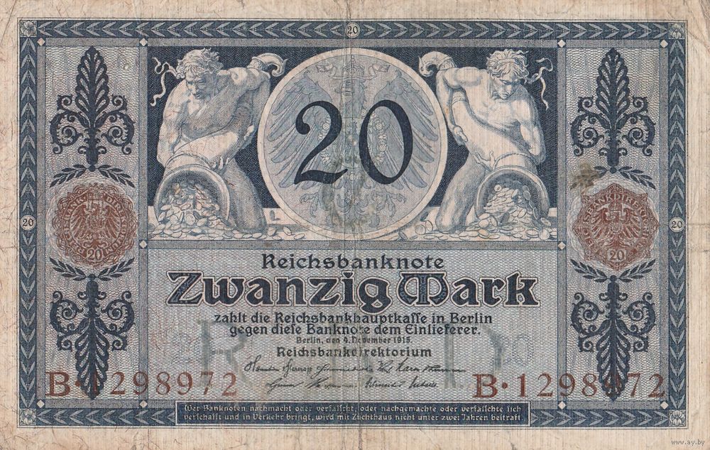 20 марок 1915 года. банкнота Германия, Кайзер.