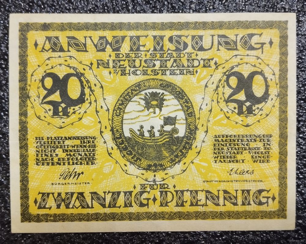 20 пфеннигов Германия вып. 1920 г. Нойштадт-ин-Хольштайн (Neustadt in Holstein) нотгельд (номерной, 28.2)