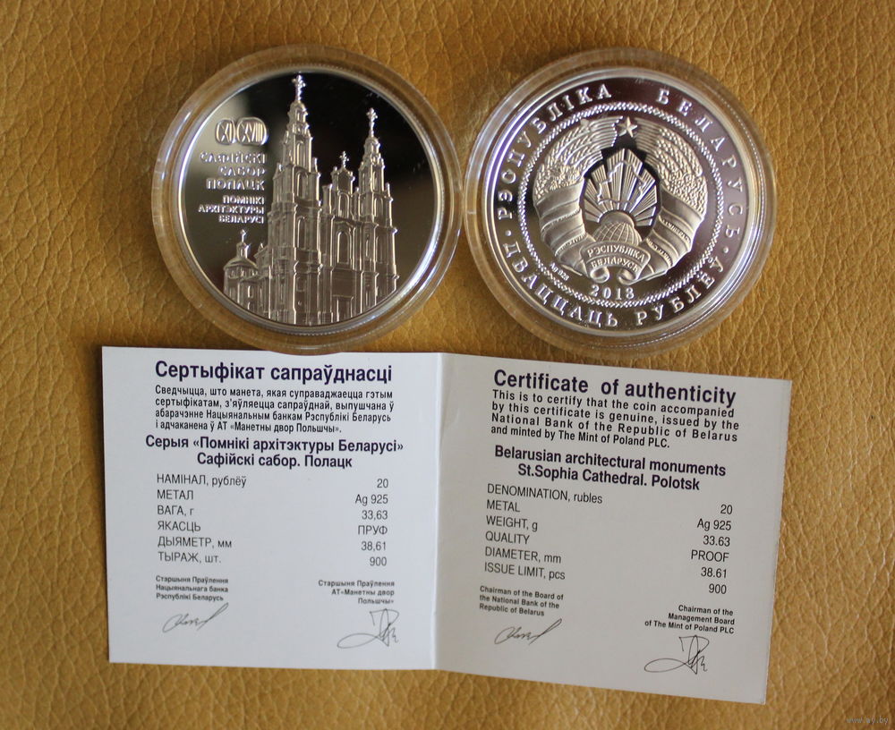Памятные монеты "Сафійскі сабор. Полацк" ("Софийский собор. Полоцк")