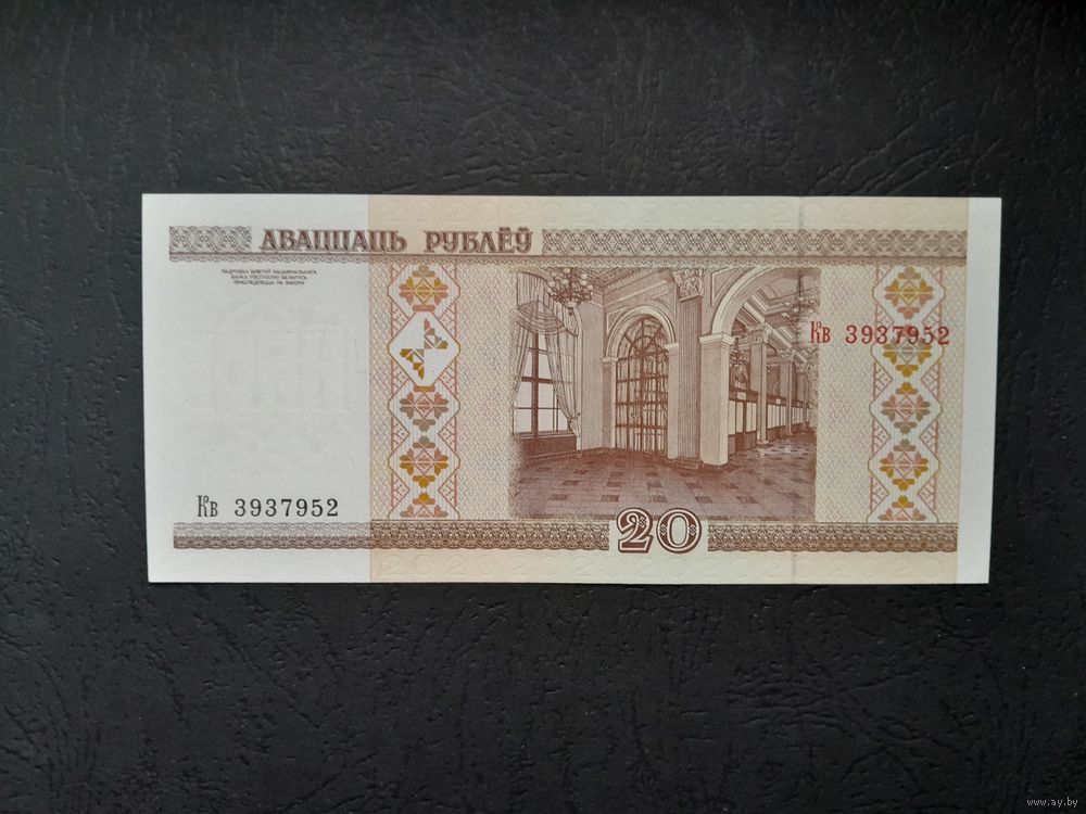 20 рублей 2000года. Беларусь. Серия Кв. UNC