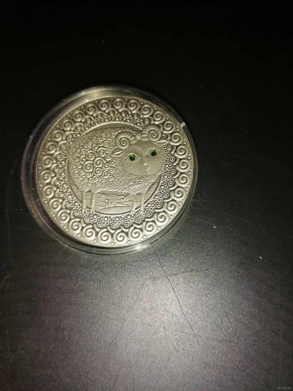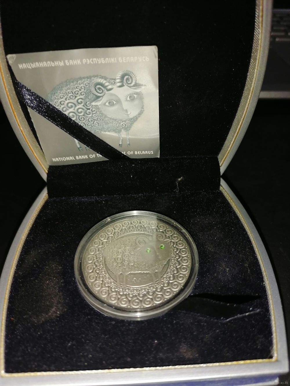 • качество: "анциркулейтед", монета оксидирована со вставкой (синтетический кристалл)