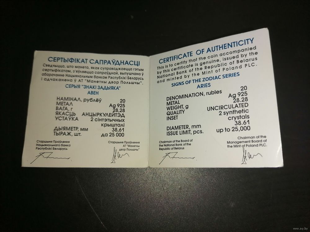 • Дизайн: С. Заскевич (Беларусь) Чеканка: АО "Монетный двор Польши", Варшава, Польша