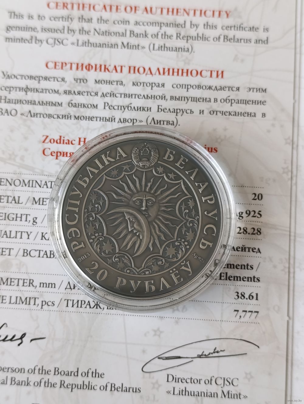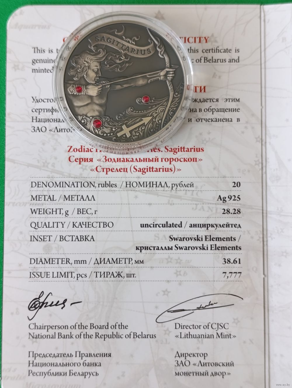20 рублей 2013 год. Зодиакальный гороскоп. Стрелец. Серебро.
