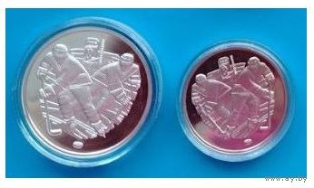 Чемпионат мира по хоккею 2014 года. Чижовка-Арена Серебряная проба серебра: 925 номинал: 20 рублей масса монеты: 33,63 г. масса серебра в чистоте: 31,1 г. качество: "пруф" диаметр: 38,61 мм. тираж: 5 000 шт. Медно–никелевая номинал: 1 рубль масса монеты: 13,16 г. качество: "пруф-лайк" диаметр: 32 мм. тираж: 5 000 шт. Монета в банковской капсуле, не вскрывалась, хранилась в специальном планшете, на серебряные монеты сертификат.